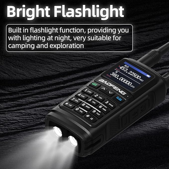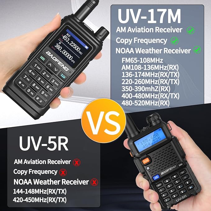 - ✅【Upgrade Of UV-5R 】Frequency Range: 144-148MHz, 420-450MHz,Up to 999 storage channels and a 1.77 inch large color screen, making operation more convenient.The enlarged walkie talkie body size is designed ergonomically to enhance user feel.FCC ID:2AJGMUV17M