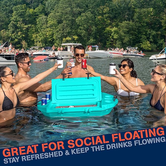 - SOCIAL FLOATING: Always have your cold drinks within reach, in and out of the water; Easy cooler access for 2 large lids and 4 built in cup holders; Anchor your CUDDY on the sandbar, tie-off on your boat or tow behind your kayak