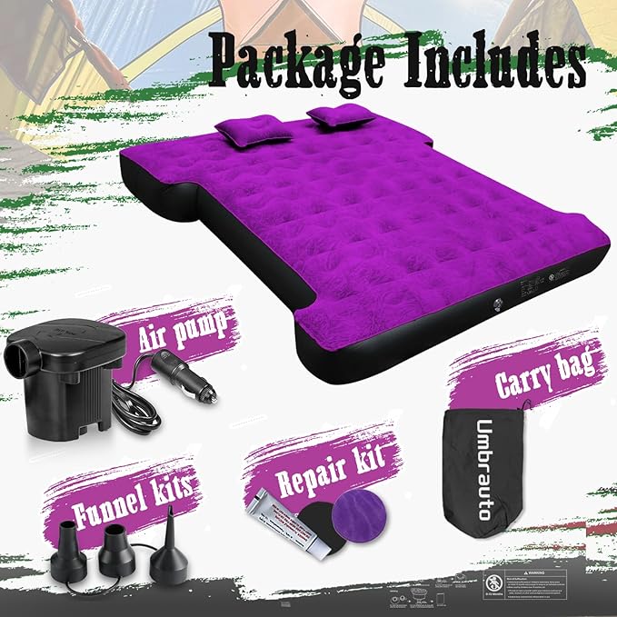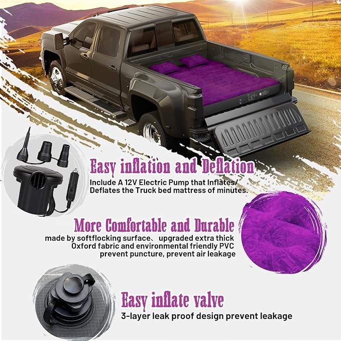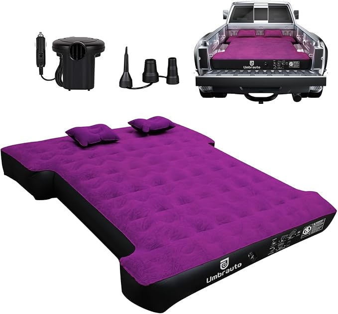 Umbrauto Truck Bed Air Mattress for 6-6.5ft Full Size Truck Bed, Upgraded Thickened Inflatable Mattress with Pump, Pick Up Airbed for Truck Tent Camping, Purple
