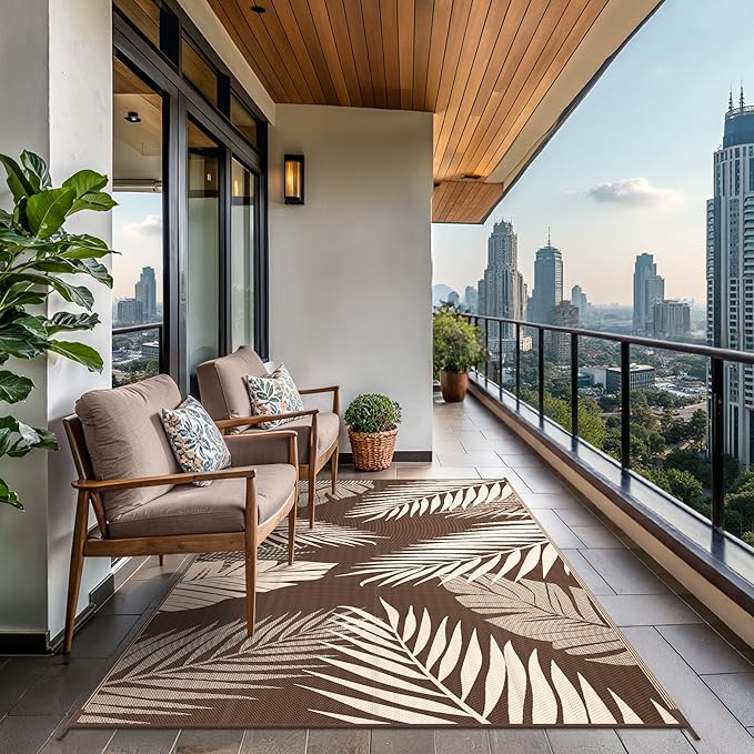 - Palm Leaf Design & Double-Sided Pattern: GENIMO reversible outdoor rug is designed with a double-sided pattern, completing the unique layout of multiple palm leaves. The 2 shades of coffee and beige achieve the ultimate fusion. Either side can blend perfectly with nature and look very full and comfortable