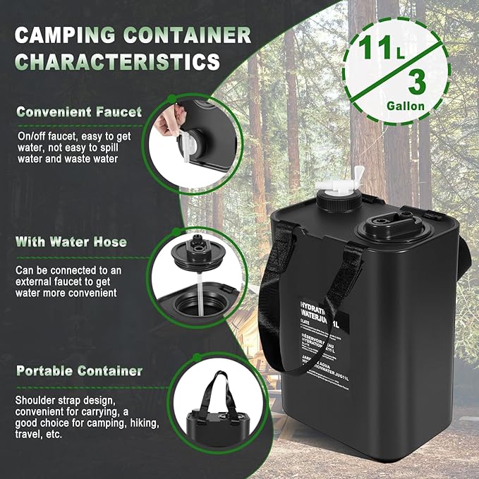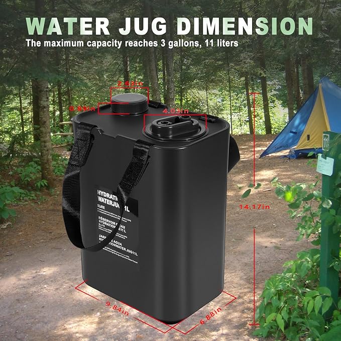 - 【Lighter Weight】This water jug is made of premium materials with lighter weight performance; The maximum capacity reaches 3 gallons, 11 liters; When going on a family camping trip, not only the father or the adults can carry the water tank, but the children can also carry it, perfect for camping or family get together