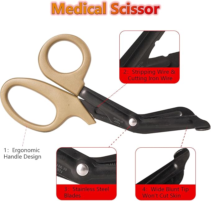 - 【Professional EMT Trauma Shear】Cut or remove clothing quickly and effectively with the EMT trauma shear. Designed for bare skin application of the tourniquette,it can easily cut through multiple layers of fabric, leather and more. The medical scissor handles are ergonomically designed for ease of use and comfort.