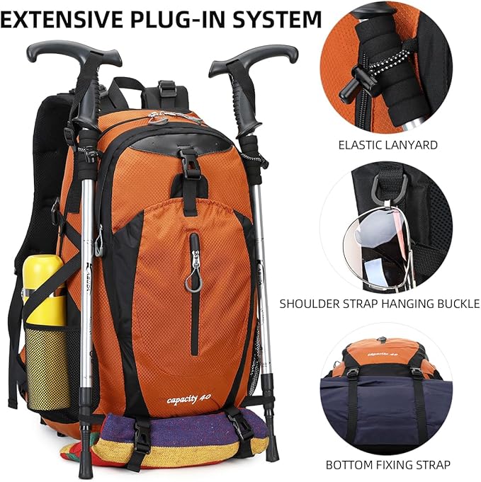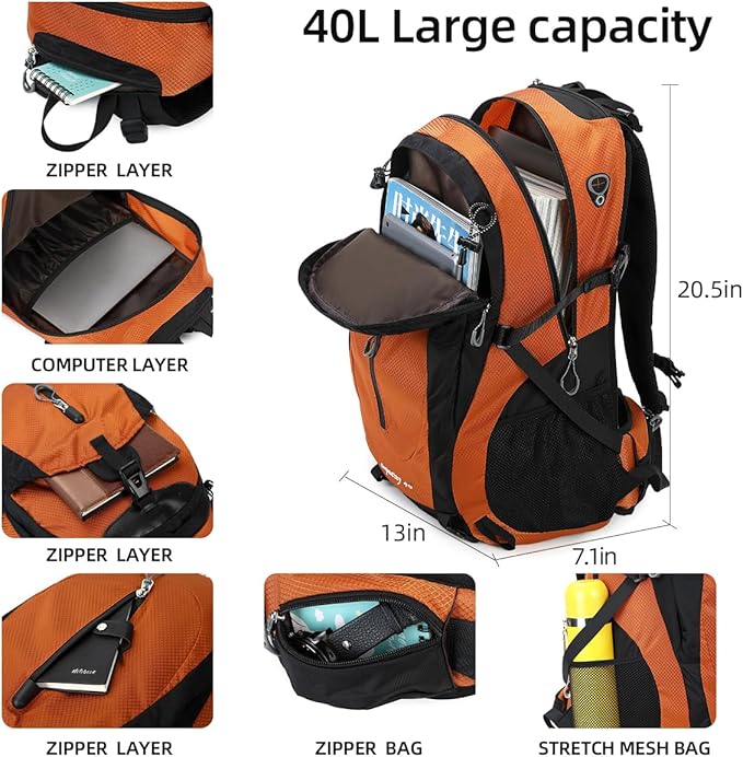 40L Waterproof Lightweight Hiking,Camping,Travel Backpack for Men Women