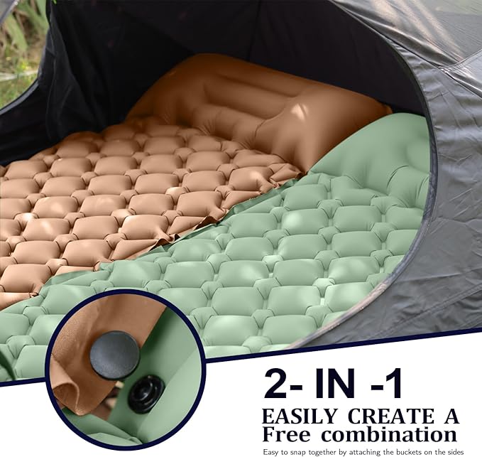 - 【Get One More for A Twin Camping Bed】Connect two camping mattress pad effortlessly using the side buttons to create a spacious double bed.making a wider relaxing space for more comfortable sleeping. Perfect for you to go out camping with your families and friends.. Plus, our commitment to quality is backed by a refund/replacement warranty, ensuring your purchase is worry-free.