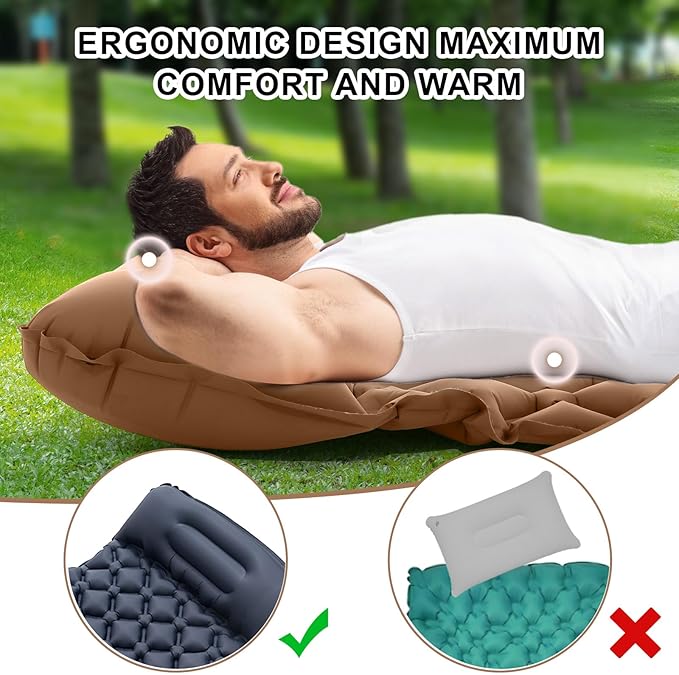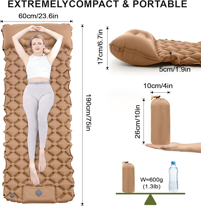Sleeping Pad for Camping - Inflatable Camping Mat, Ultralight Air Mattress,Built-in Foot Pump Backpacking Sleeping Pad,Compact Sleeping Mats for Camping、Hiking、Traveling (Tawny)