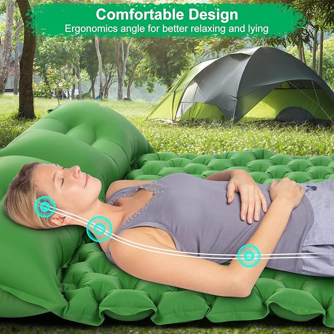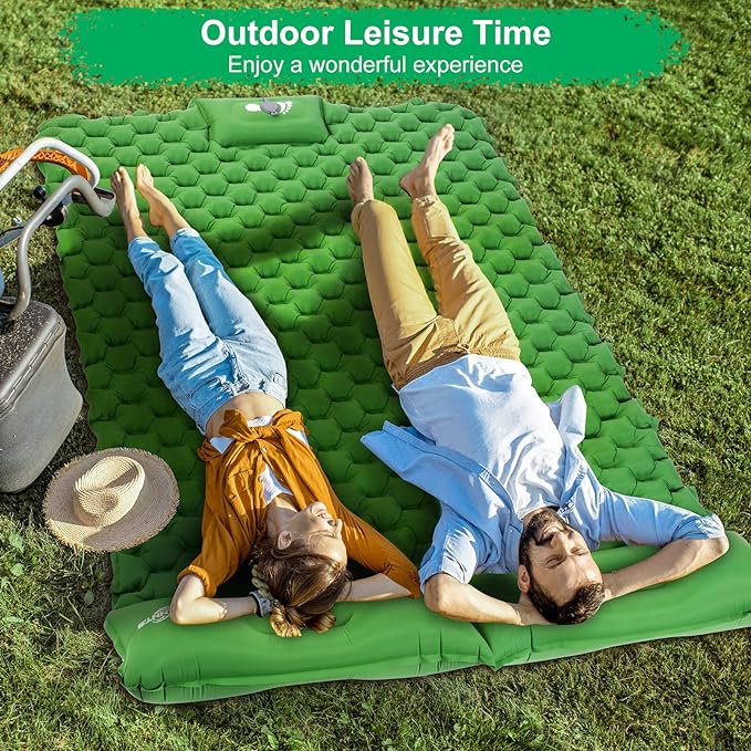 WANNTS Double Sleeping Pad, Ultralight Inflatable Sleeping Pad for Camping, Built-in Pump, Ultimate for Camping, Hiking - Airpad, Carry Bag, Repair Kit - Compact & Lightweight Air Mattress(Green)