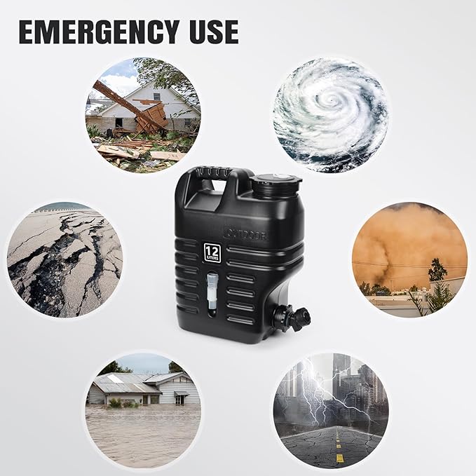 - Suitable for Outdoor and Emergency Use - This portable 3.17 gallon water container is perfect for storing. Its stylish design makes it a great choice for outdoor activities such as camping, picnicking, hiking, as well as for home and emergency preparedness