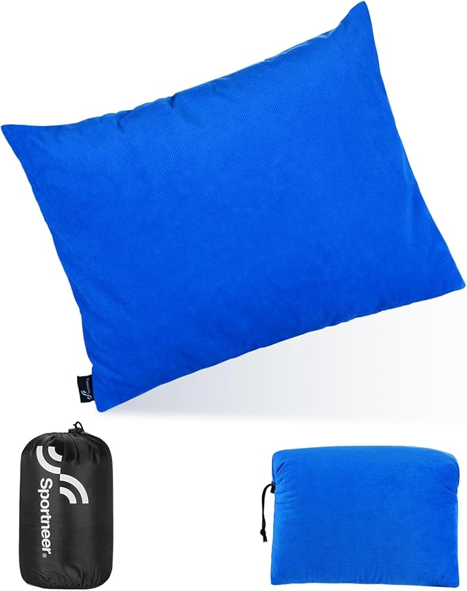 Sportneer Camping Pillow for Sleeping, Compact Camp Pillow Travel Pillow with Washable Cover and Storage Bag Camping Essentials and Travel Pillow for Airplanes Camping Travel