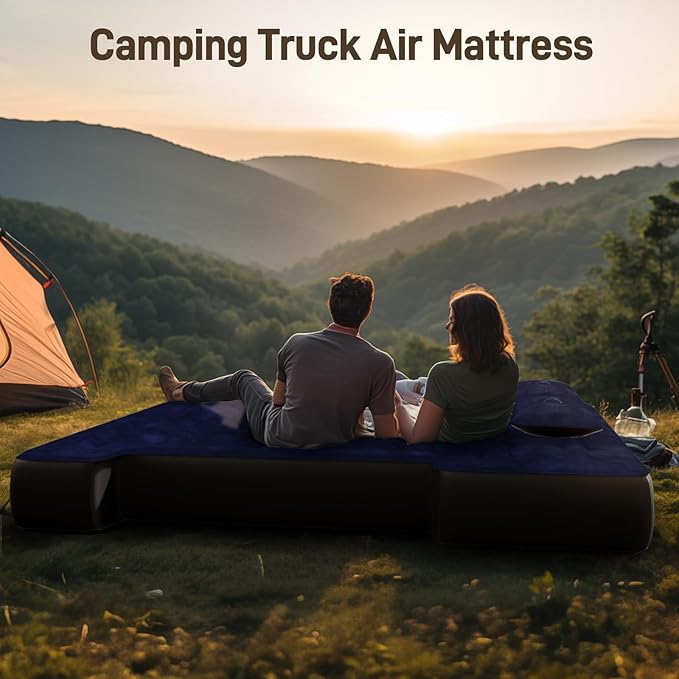 - High-Quality Materials: Our inflatable truck bed air mattress features a plush soft-flocked top surface, durable PVC construction for robust support, and upgraded 2024 extra-thick 210T grid fabric on the bottom to prevent punctures and air leakage, enhancing durability and reliability.