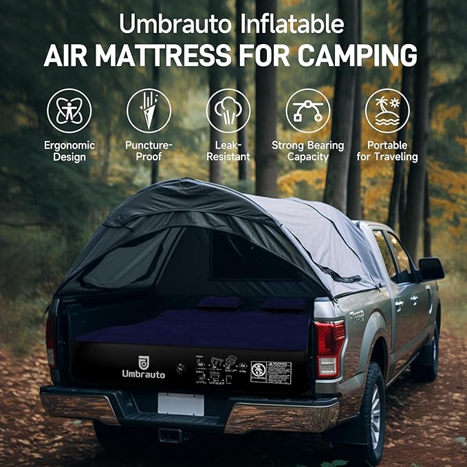 Umbrauto Truck Bed Air Mattress for 6-6.5ft Full Size Truck Beds, Inflatable Pickup Airbed Tent Sleeping Pad with Pump, Repair Patch, Pillows, Carry Bag