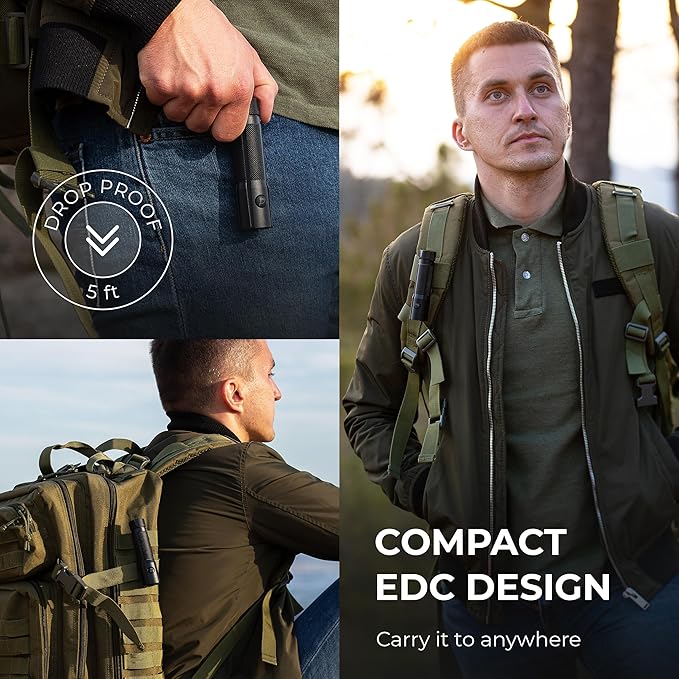 - RUGGED AND WATERPROOF DESIGN: Built to withstand the elements, this flashlight features a robust A6063-T6 aluminum body with a premium type HAIII hard-anodized anti-abrasive coating. The waterproof IP68 rating ensures reliable performance in any weather, making it perfect for outdoor adventures and emergencies.