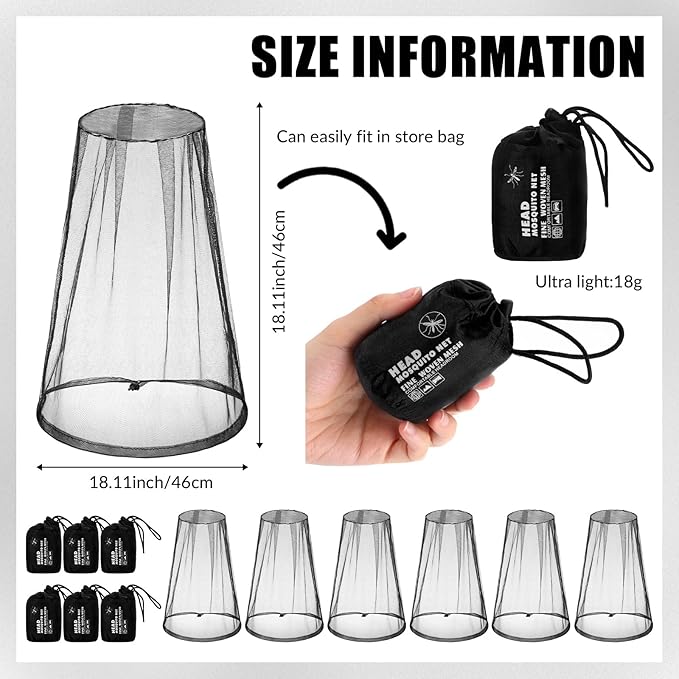 • Size: each mosquito net is approx. 18.11 x 18.11 inch/ 46 x 46 cm in size, big enough for men, women, youth, or elderly wearing
