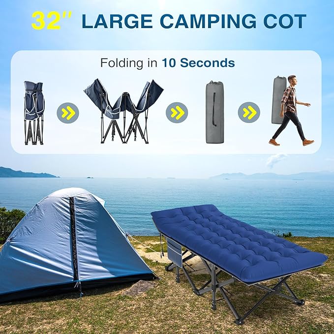 ZENPETIO Oversized XXL Folding Camping Cot, Heavy Duty Sleeping Cot for Adults with Mattress and Pillow, Portable Cot Bed with Carry Bag for Outdoor Camp Travel Home Guest Office, 78x32x18