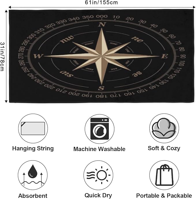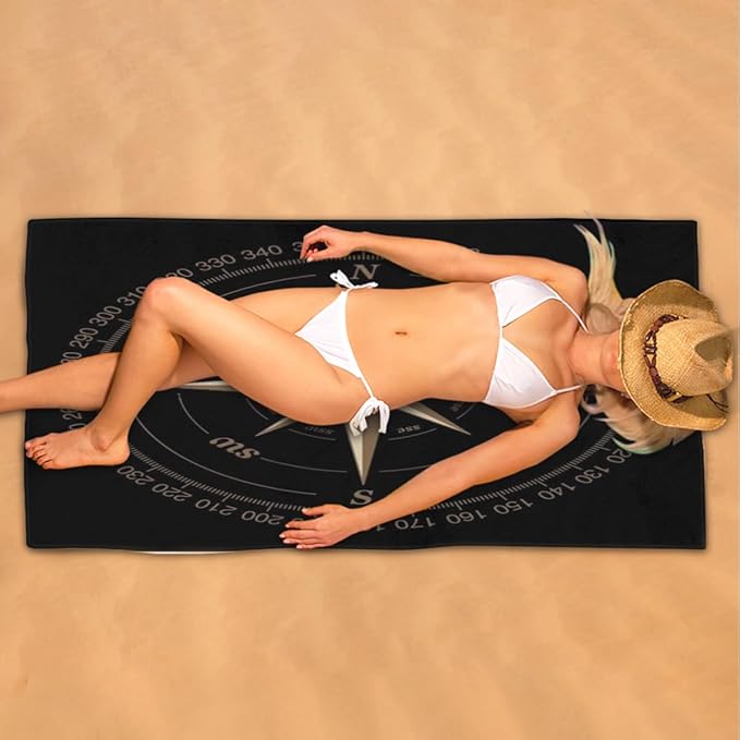 Compass Rose Beach Towel Oversized Quick Dry Beach Blanket Microfiber Sand Free Absorbent Lightweight Artwork Black Bath Towel for Pool Travel Swimming Camping Women Men