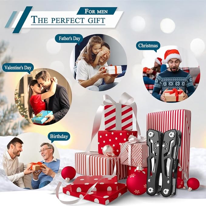 - 【STURDY AND VERSATILE】Our multitools for men gift won't break easily like the snow multi-tool or other multi-tools, making your friends and family feel sorry for it. Our products are made of high quality stainless steel, sturdy and durable, it can be widely used to repair all kinds of furniture, such as computers, TVs, bicycles, etc.. It can also be used for camping, fishing, and even all aspects of life.