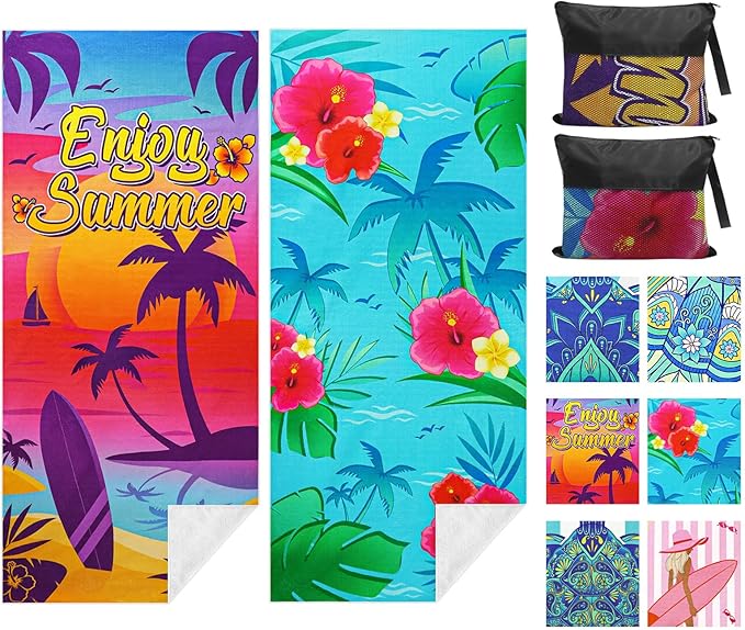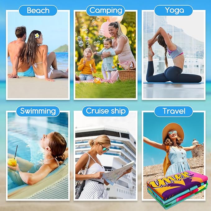 - VERSATILE USAGE: Beach towels set of 2 pack. Can be used as a beach blanket, pool towel, bath towel or even camping towel, perfect for beach, pool, sauna, hotel, yoga, travel, bathroom, camping and picnic, indoor or outdoor. Great summer gift for family, friends, especially beach lovers and swimmers.