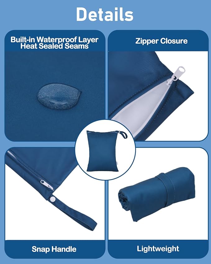 - Waterproof: Made from durable, waterproof material, the 2L camo roll top bag ensures your items stay dry in any wet environment. The roll-top closure provides a secure, watertight seal. The zippered wet bag with one pocket is suitable for protecting contents from either getting wet or the wet contents leaking out, which is more made for keeping a wet swimsuit, gym clothes, diapers, etc.
