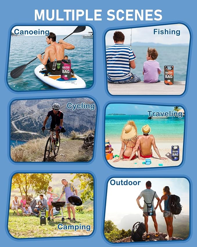 - Great Matching for Versatile Use: The 2L roll top backpack sack is very useful for water activities, including swimming, kayaking, beach trips, rafting, boating, hiking, camping, and fishing. Perfect for both wet and dry storage needs.