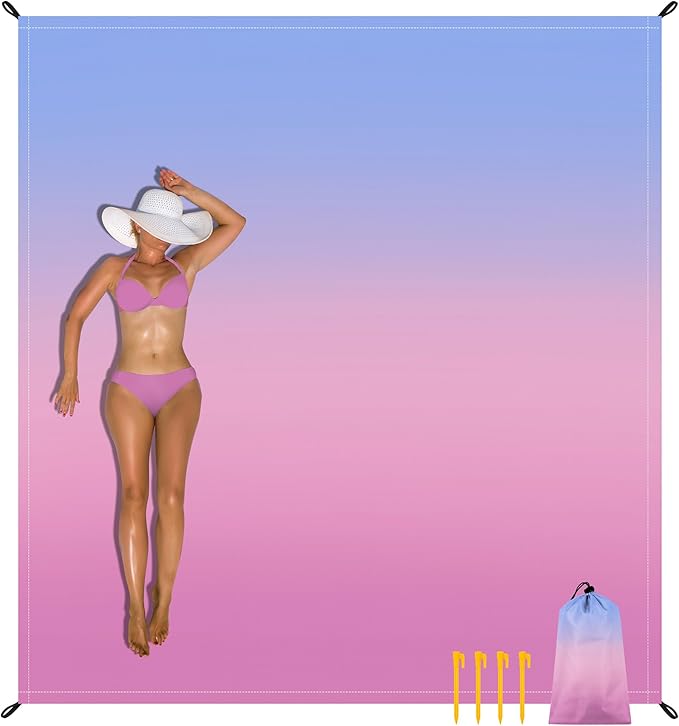 - Sand-free Beach Blanket: The nylon beach blanket is not only lightweight but feels good on the skin. Sand brushes and shakes off easily, the beach mat ensures a clean and comfortable surface for lounging.