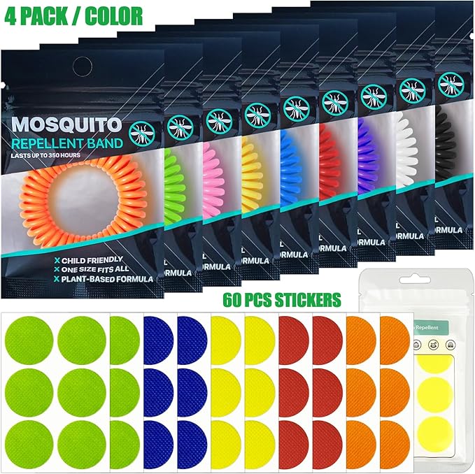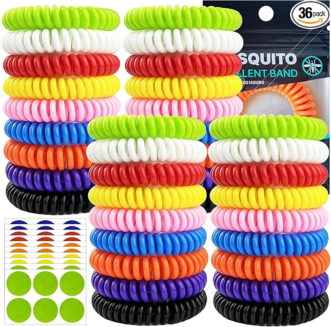 - The insect repellent bands work by emitting a scent that repel mosquitoes and create a barrier between the user and the insects. You will get 36 pack bands and 60 pcs stickers, each band can last up to 350 hours that enough for the whole summer for the family..