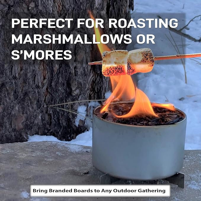 - Great for roasting marshmallows or making s'mores. Real Wood Campfire made with all natural non-toxic materials. Safe for cooking, easy to light and easy to put out (Just Slide The Lid On To Extinguish).
