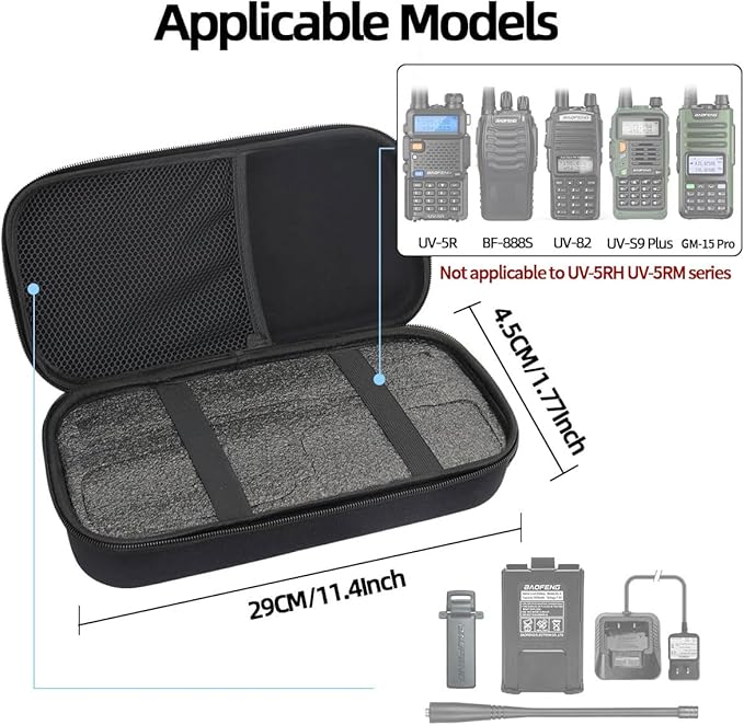 - 💪【Compatible With Multiple Models】Specially designed for Baofeng UV-5R,BF-F8HP,GM-15 Pro,UV-5RA,UV-5R+ Plus,UV-5RTP,UV-5RE,GT-5R,BF-888S,UV-S9 Plus UV-82 etc,mesh pockets inside can be stored antenna, microphone, charger and other accessories,convenient for home storage or outdoor carry.