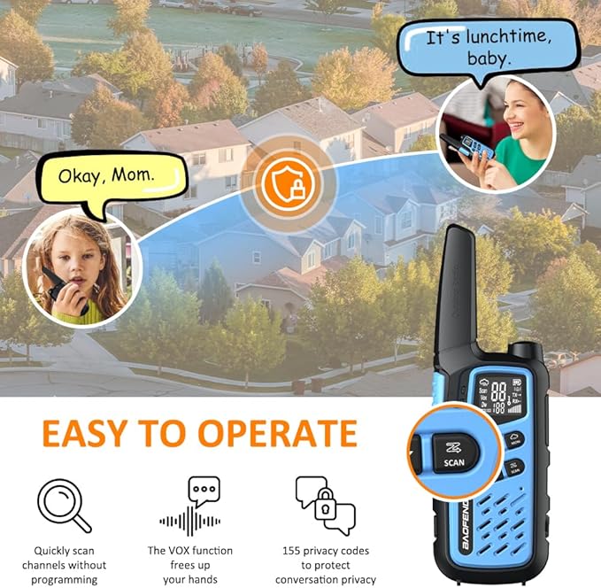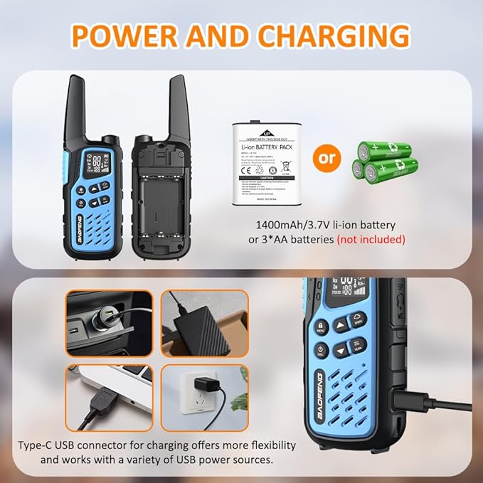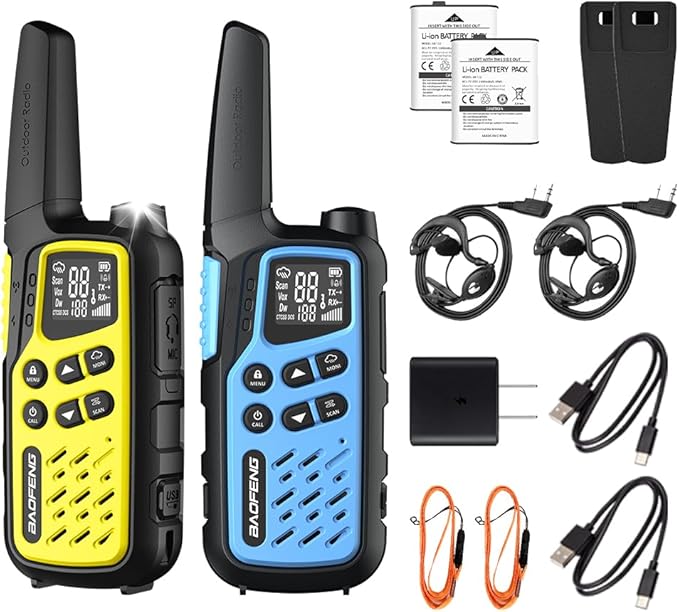BAOFENG T25 Walkie Talkies for Adults Teens 22 FRS Channels Two Way Radio with 1400mAh Rechargeable Battery, VOX, NOAA, Flashlight, SOS, Dual Watch for Camping, Hiking, Biking, Family Outdoors, 2 Pack