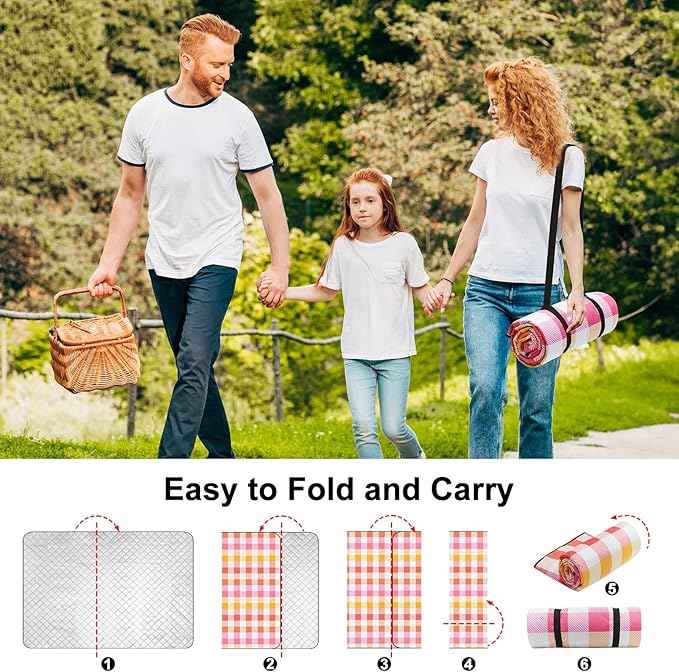 - Easy to Pack: Once your outdoor fun is over, you can easily pack up the picnic blanket using the included carrying strap, this practical feature makes it simple to fold, secure, and carry the outdoor blanket, allowing for easy transport to and from your favorite outdoor locations, no more struggling with bulky, awkward blankets