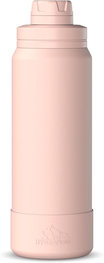 Hydrapeak 26oz Sport Insulated Water Bottle with Chug Lid, Leak & Spill Proof, Keeps Drinks Cold for 24 Hours, Hot for 12 Hours, Premium Stainless Steel Water Bottles (26oz, Peony)