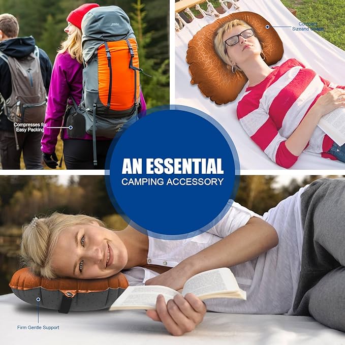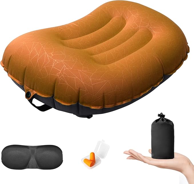 DAWNTREES Inflatable Pillow for Camping,Portable Compressible Ultra-light Travel Inflatable Pillow for Sleeping,Support The Neck and Lumbar,Backpacking Essentials (Orange)