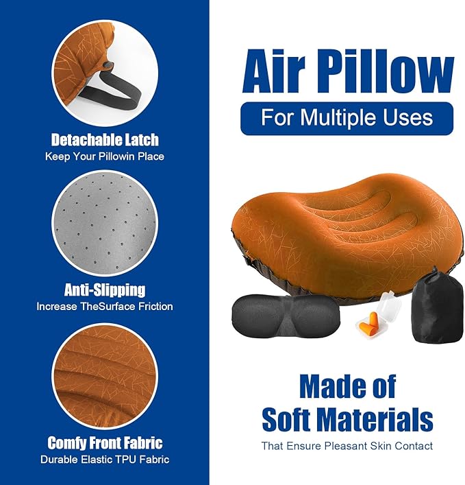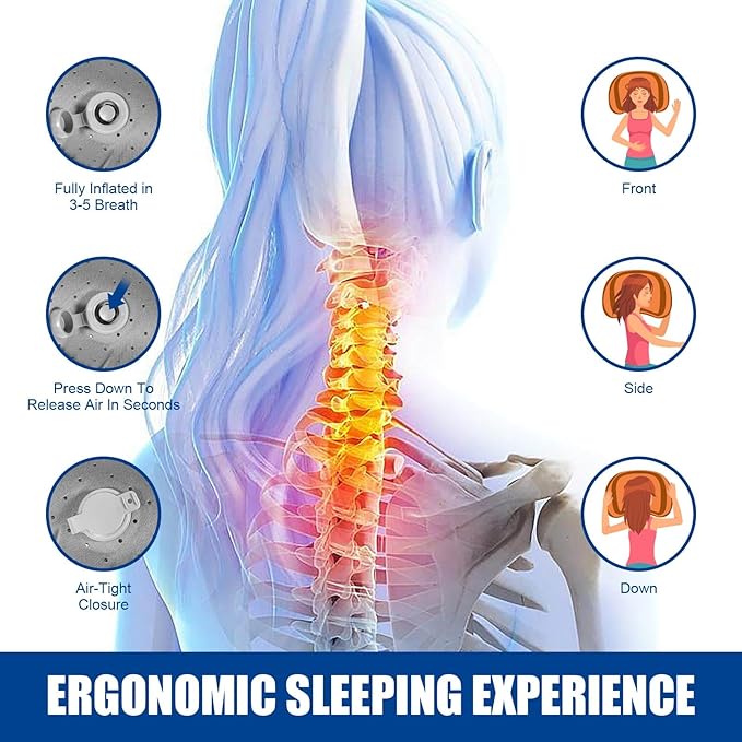 - Easy to use: All-in-one air valve, inflate the pillow with your mouth, and take about 5-8 breaths to complete the shape of the pillow. You can find the most suitable usage state for you by inflating the inflatable pillow.
