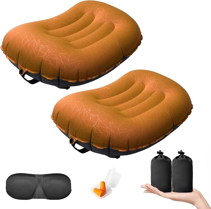 DAWNTREES 2 Pack Inflatable Pillow for Camping,Portable Compressible Ultra-light Travel Inflatable Pillow for Sleeping,Support The Neck and Lumbar,Backpacking Essentials (Orange)
