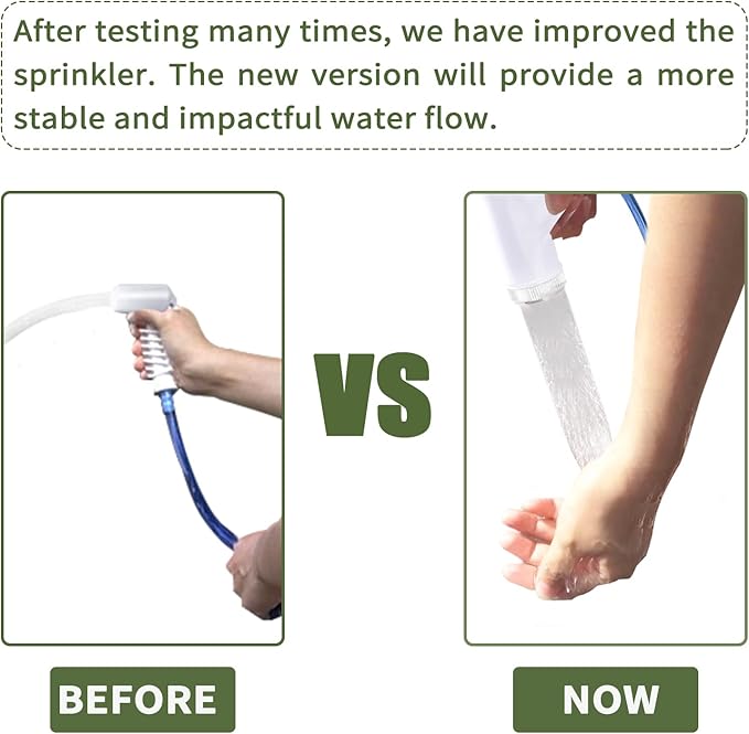 - 𝗔𝗱𝗷𝘂𝘀𝘁𝗮𝗯𝗹𝗲 𝗦𝘁𝗿𝗮𝗽𝘀-This portable shower reinforces more durable handle strap and is leakproof. You can take it anywhere more conveniently.
