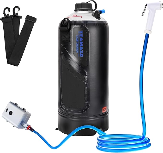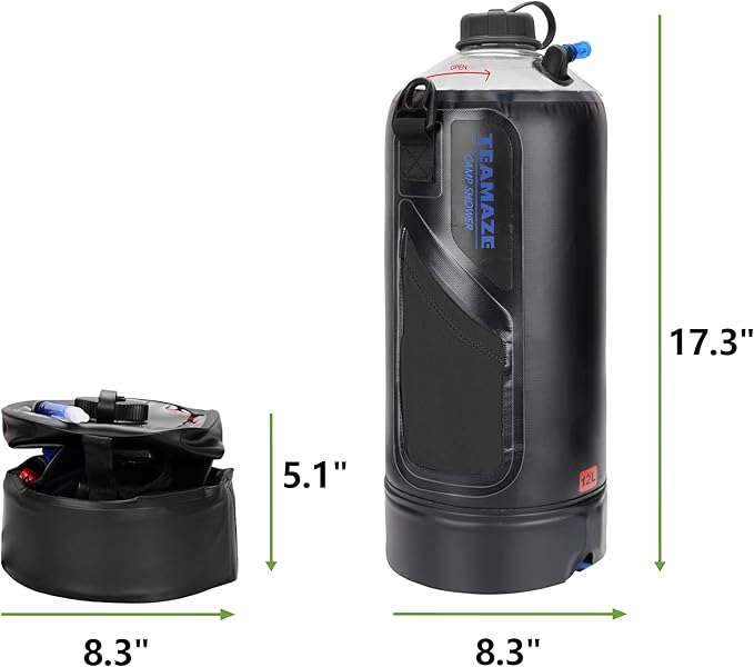 - 𝟭𝟮𝗟 𝗟𝗮𝗿𝗴𝗲𝗿 𝗖𝗮𝗽𝗮𝗰𝗶𝘁𝘆- This camping shower bag can carry up to 12 L of water for showering outdoor, letting you enjoy a better and more refreshing shower anywhere.
