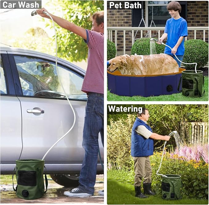 - 3-Mode Pressure Sprayer: The camping shower is designed with three water modes, which can be easily switched by the buttons on the side of the shower head, and the water stop switch can easily control the water flow. Equipped with a filter, our shower pump can purify the water and ensure a clean and hygienic outdoor shower.Leak-proof O-ring in the shower head to prevent water from spilling, ensuring a great outdoor bathing experience.