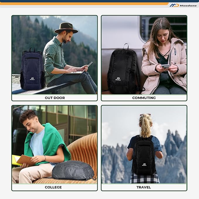 - 【Multipurpose】This Foldable backpack provides enough space for outdoor travel, camping, hiking, day trips and shopping. Comes with a main zipper pocket, a front zipper pocket and two mesh side pockets. The main compartment provides enough storage space for day trips, hiking and shopping. It is also an ideal choice for international travel at the airport.