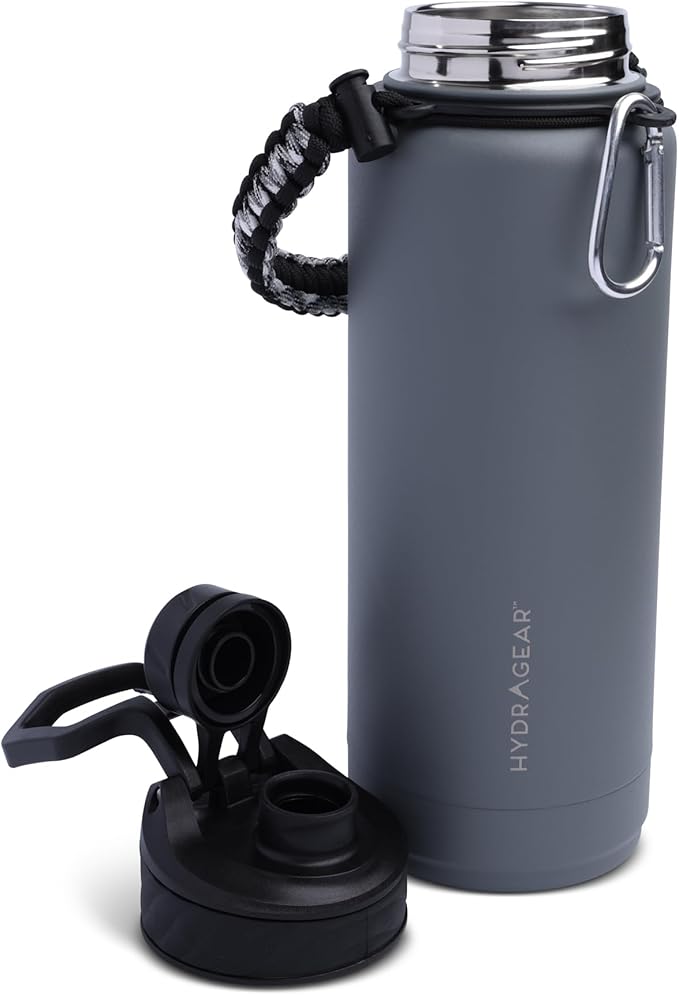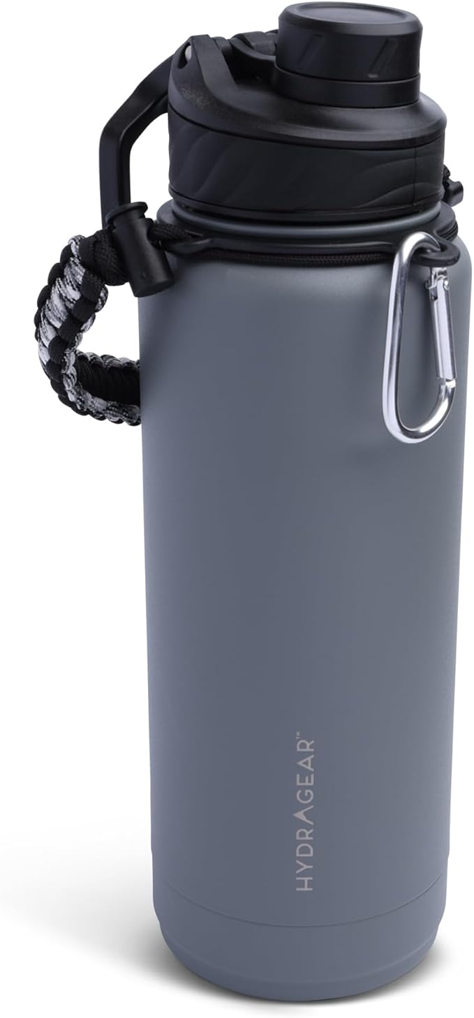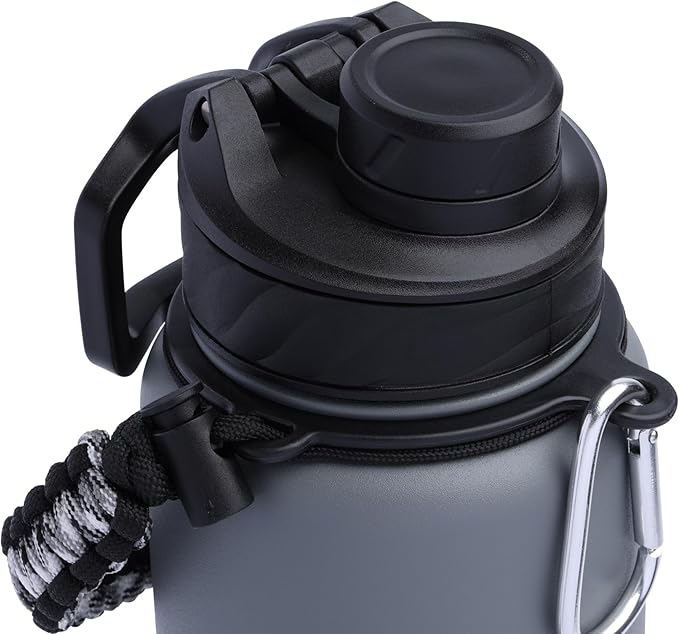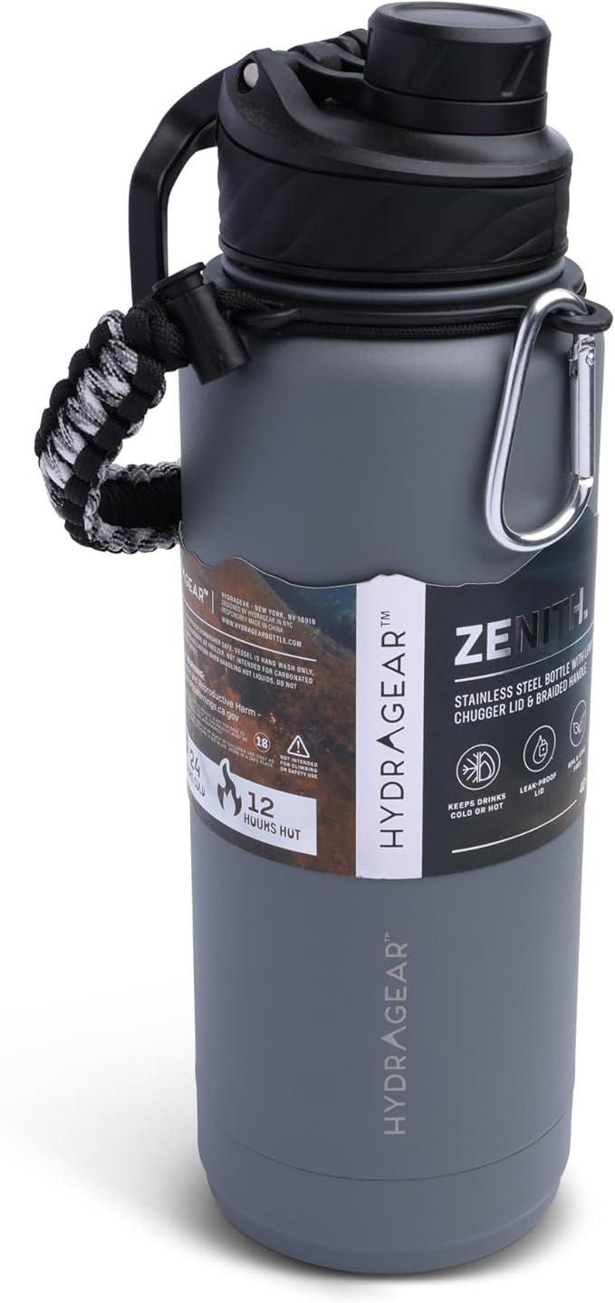 Zenith Chugger Stainless Steel Bottle with Carabiner, Compass, Signal Whistle, and Fire Starter - 40 Oz - Graphite Powder Coat