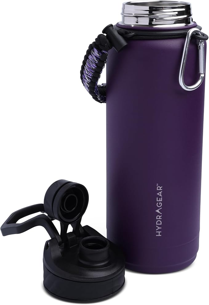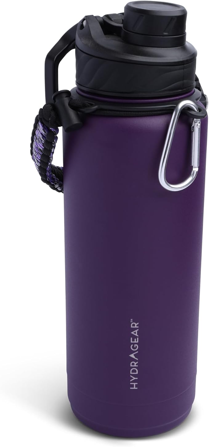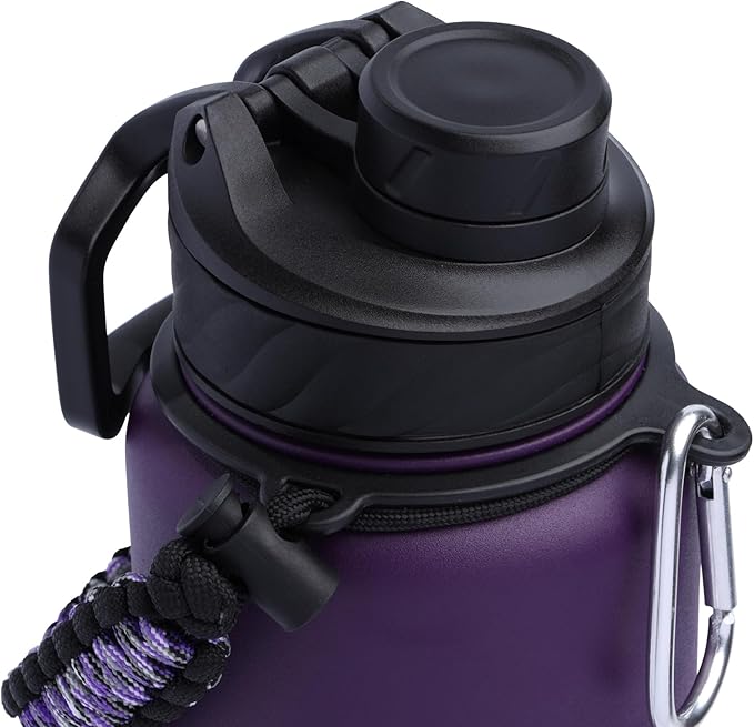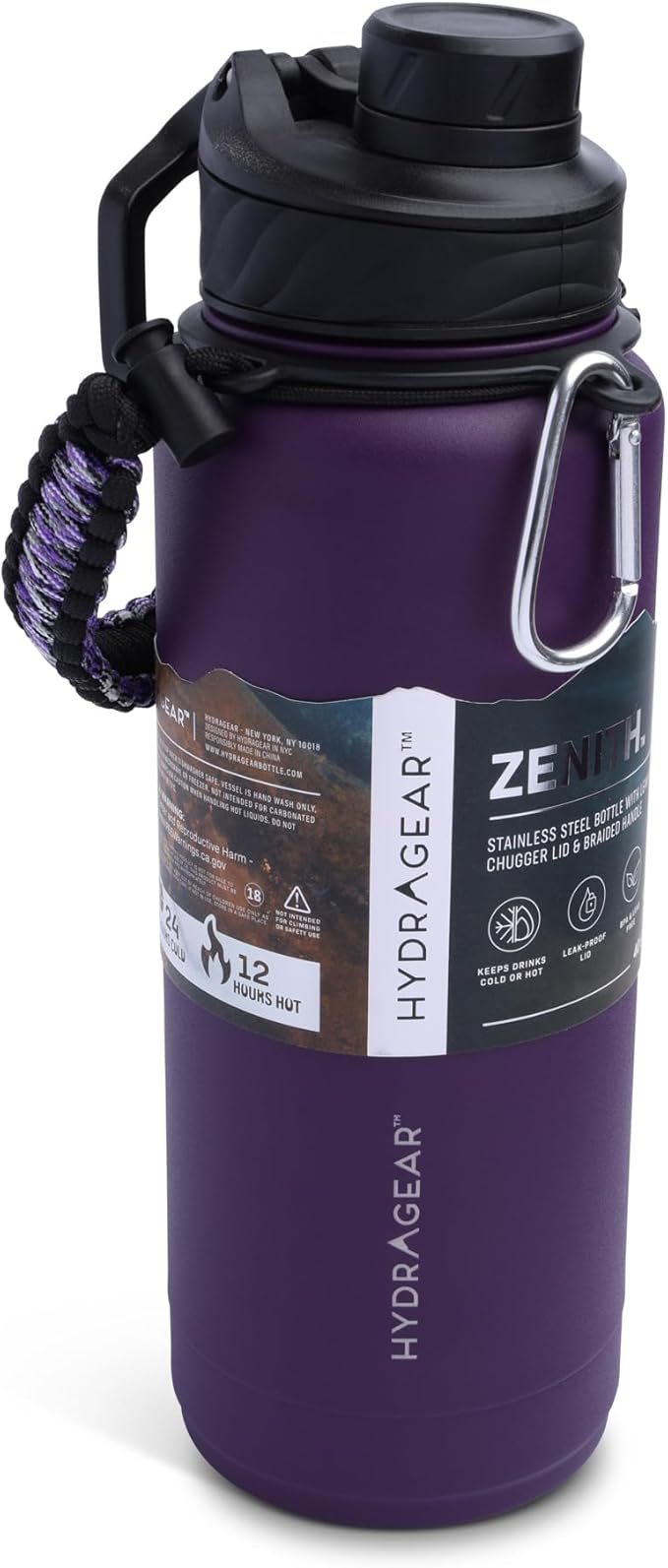 Zenith Chugger Stainless Steel Bottle with Carabiner, Compass, Signal Whistle, and Fire Starter - 40 Oz - Violet Powder Coat