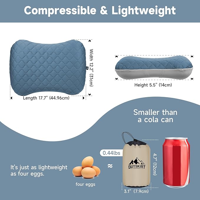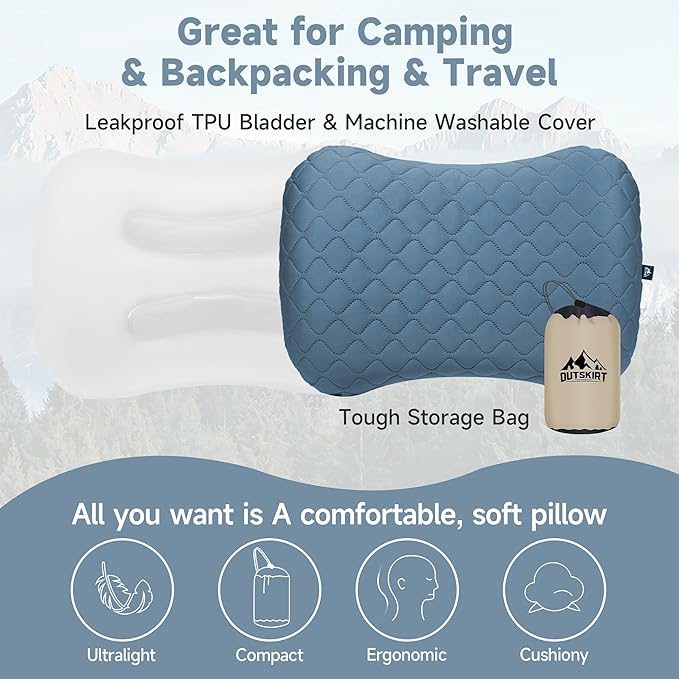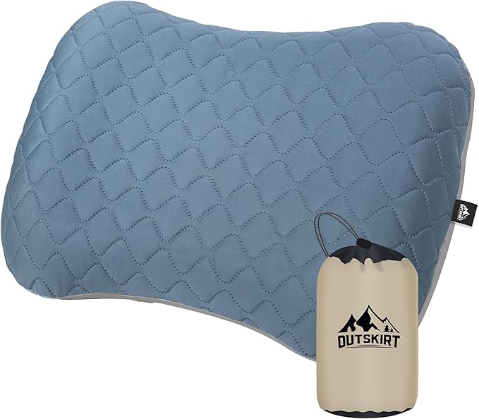 OUTSKIRT Inflatable Travel Pillow, 2-in-1 Camping Pillows for Sleeping, Ergonomic & Lightweight Small Backpacking Pillow for Travel, Hiking, Camping & Outdoor Activities, Blue