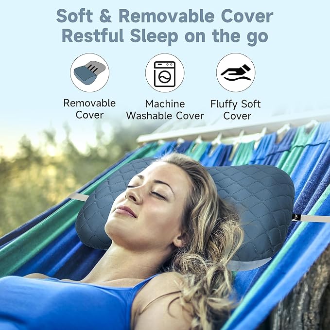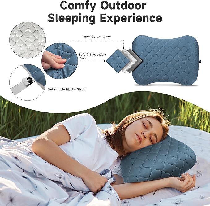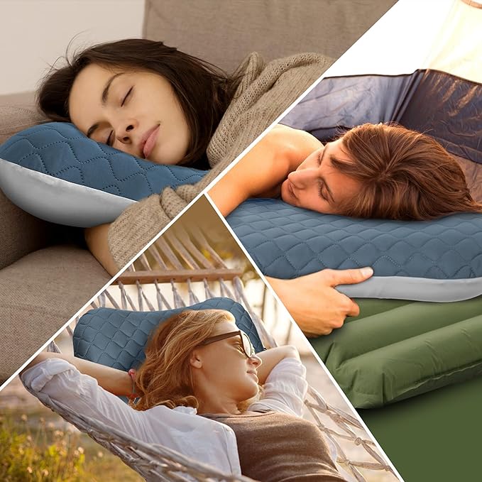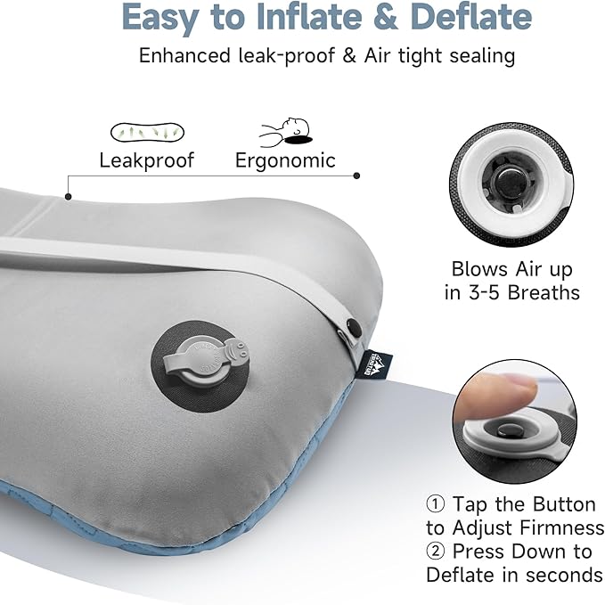 - 【EASY TO INFLATE & DEFLATE】With the unique valve design, this camp pillow can be inflated with 3 to 5 breaths, and deflated in a few seconds. Customize your comfort with the adjustable inflation feature. Whether you prefer a soft or firm pillow, simply adjust the air levels to suit your sleeping preferences!