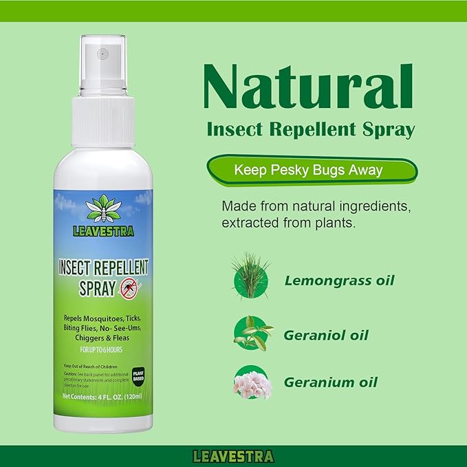 - Mosquito Repellent Spray with Active Ingredients: Containing Lemongrass Oil, Geraniol Oil, and Geranium Oil, the plant-based insect repellent spray is effective at repelling most mosquitoes, black flies, gnats,and bugs.