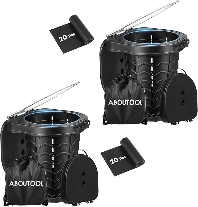- 【Easy To Use and Carry】Unlike most camp toilets that require complicated installation steps, our portable toilet for camping can be used with just a simple "pull and twist" clockwise motion. After folding, the camp toilet is about the same size as "Frisbee" and weighs only 2.75 pounds. It comes with a waterproof carrying bag, making it easy to carry.