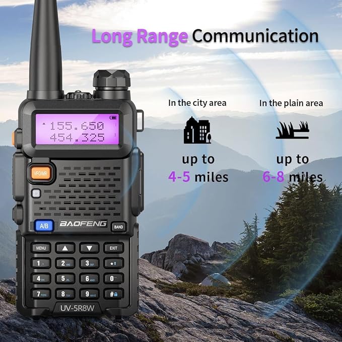 Baofeng UV-5R 8W Ham Radio Long Range UV5R Dual Band Handheld Two Way Radio Walkie Talkies with 1800mAh Li-ion Battery and Earpiece for Hunting Survival Gear