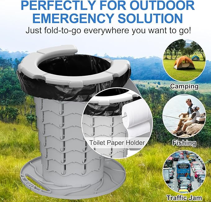 - MULTI-FUNCTIONS: This Portable Folding Toilet with Lid allows you to switch between different modes of use, not only as a camping toilet, but also a Portable Potty with storage function, such as trash can, storage box, indoor toilet for the elderly, vomit bucket for pregnant women and more. We're pretty sure this is a good option for potty Train kids, which not only solves the problem of children having to pee, but also provides potty training for them well.