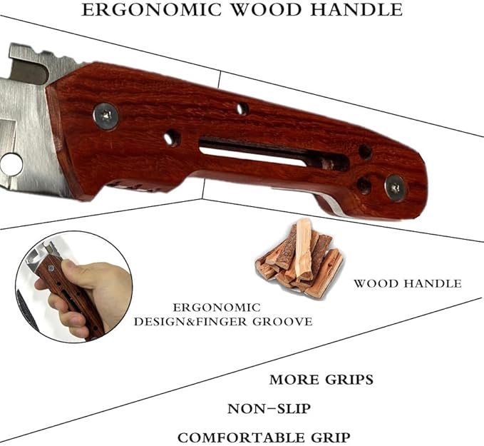 - 【Ergonomic Wood Handle&Knife Sheath for EDC】:Ergonomic wood handle knife include comfortable grips and save energy during heavy duty work.Wood handle offers a good amount of grip which generally increases when the wood gets wet.The bush knife with sheath is easy to carry.