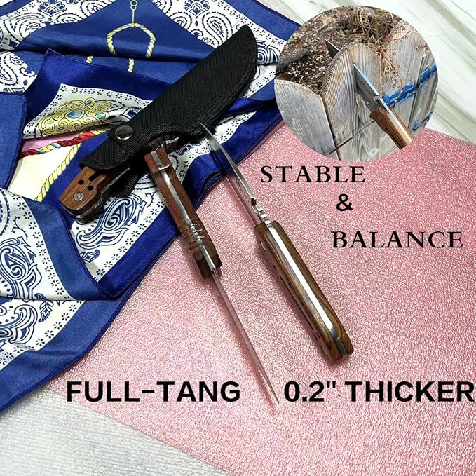 - 【Sturdy Full Tang Knife & Groove Design】:The blade runs through the wood handle knife,ensuring strength,balance and durability for long term usage in the field. The groove design on the back of the machete allows cutting without slipping.
