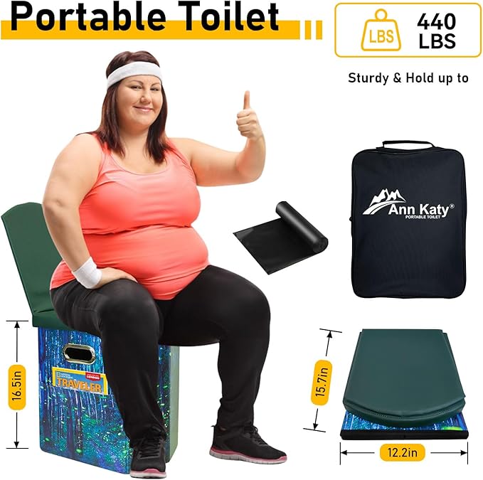 - 【Portable Design and Storage Convenience】Both the toilet and tent feature a foldable design for easy carrying. The portable toilet folds down to a compact size of 3.15*15*11.8 inches and expands to a user-friendly size of 16*14*12 inches – perfect for adults. The tent unfolds to a spacious 47*47*74 inches and conveniently folds down to a compact 23*23*2 inches. All neatly packed into a large carry bag that won't take up much space in your backpack.