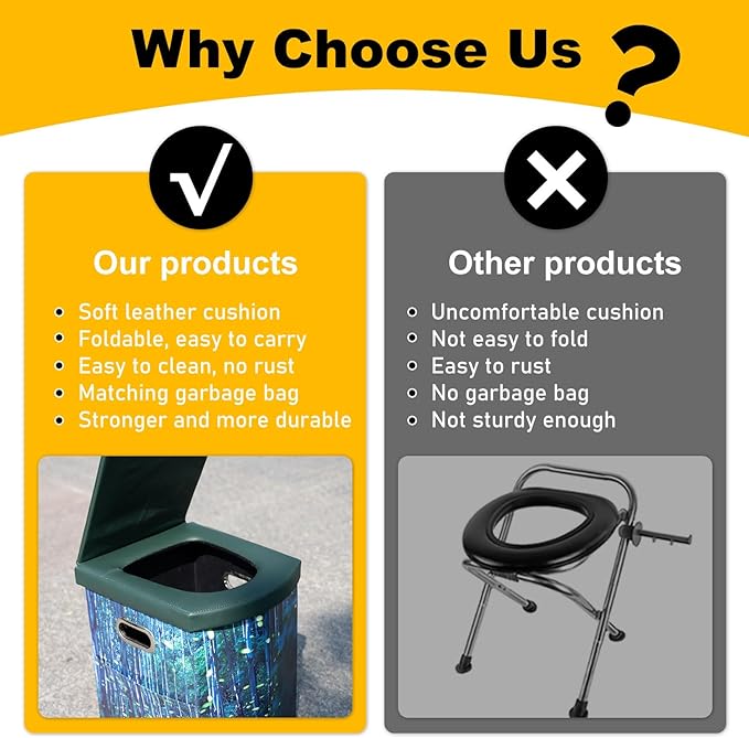 - 【Multifunctional Use】The innovative portable toilet is not just for bathroom breaks – it transforms into a storage box, trash can, bar bucket, small dining table, and even a collapsible stool. The privacy tent adds an extra layer of convenience, providing a secluded space for outdoor showers, changing, and using the restroom. It opens up endless possibilities for outdoor living, catering to various needs in your daily adventures.