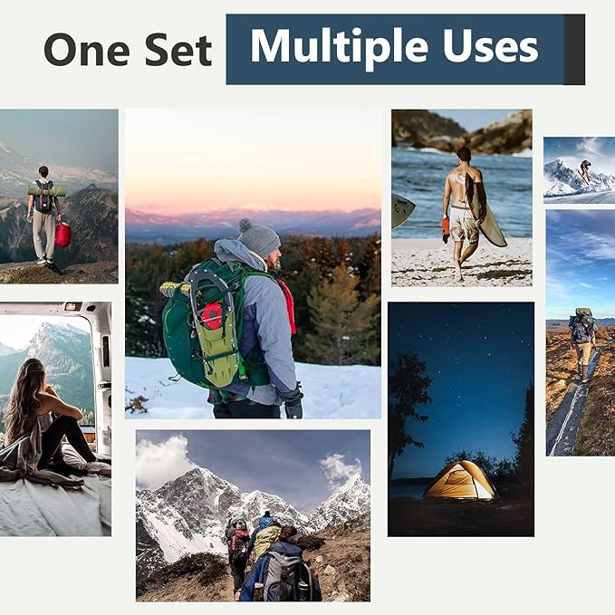 - MULTIPURPOSE: This dry bag set is ideal for a wide range of outdoor activities, including backpacking, hiking, kayaking, boating, camping, cycle touring, travel, and more.