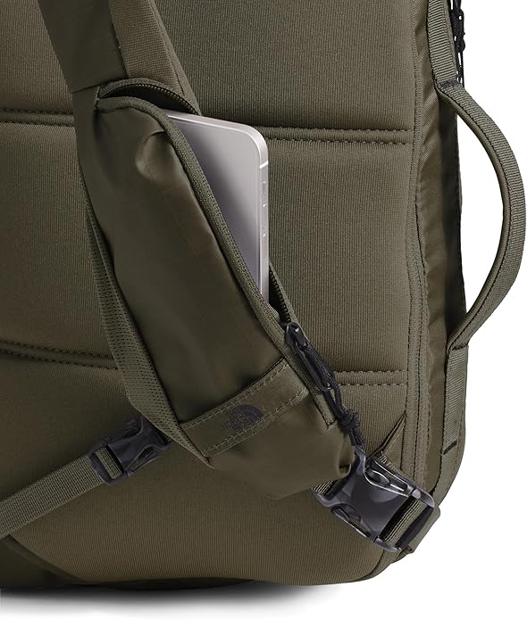 - COMFORTABLE CARRY. An adjustable, padded shoulder strap, with cell phone pocket, is comfortable enough to wear all-day, thanks to a Durable Water-Repellent (DWR) finish that shields against wet weather.